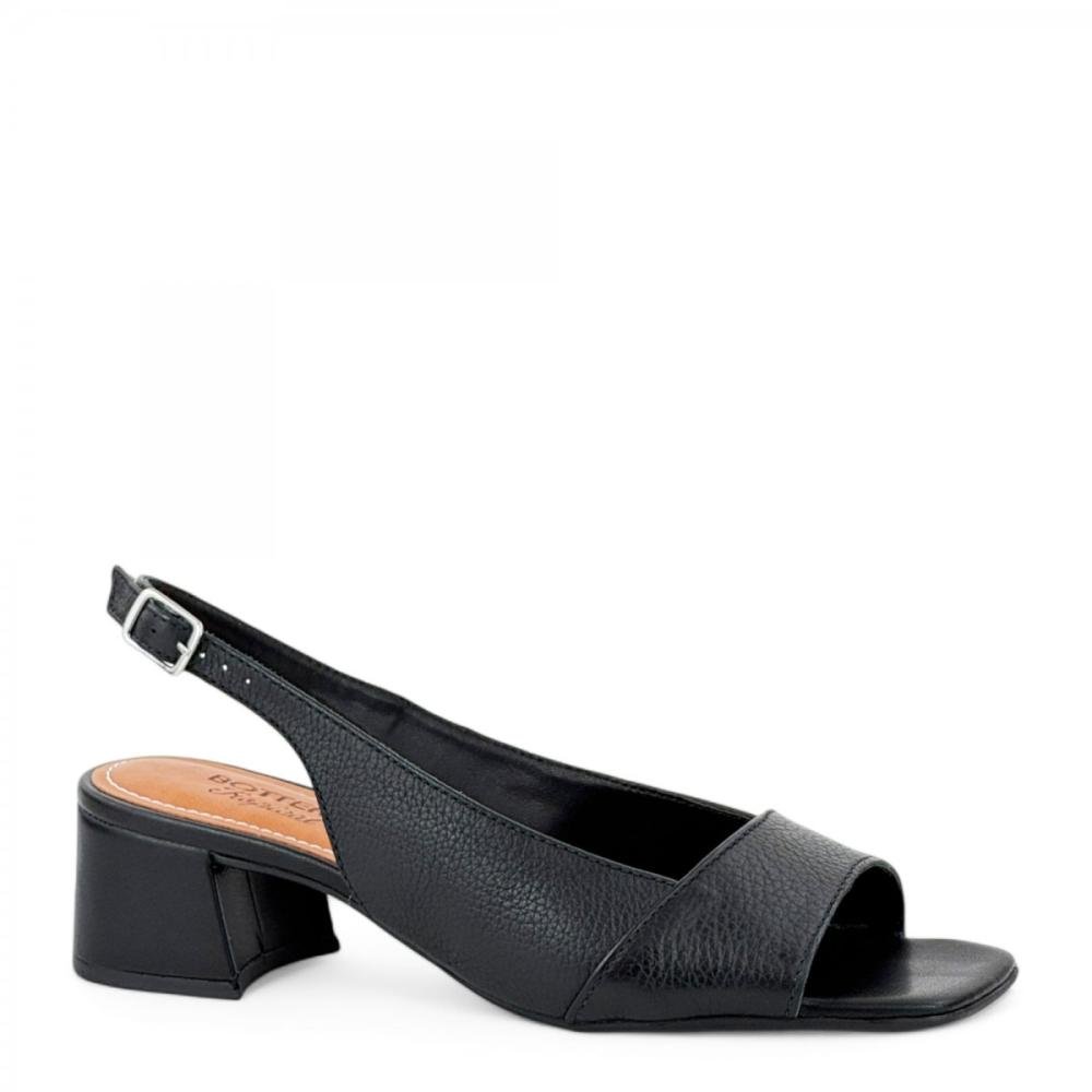 Sandália Couro Slingback Salto Bloco Médio Bottero Feminina Preto