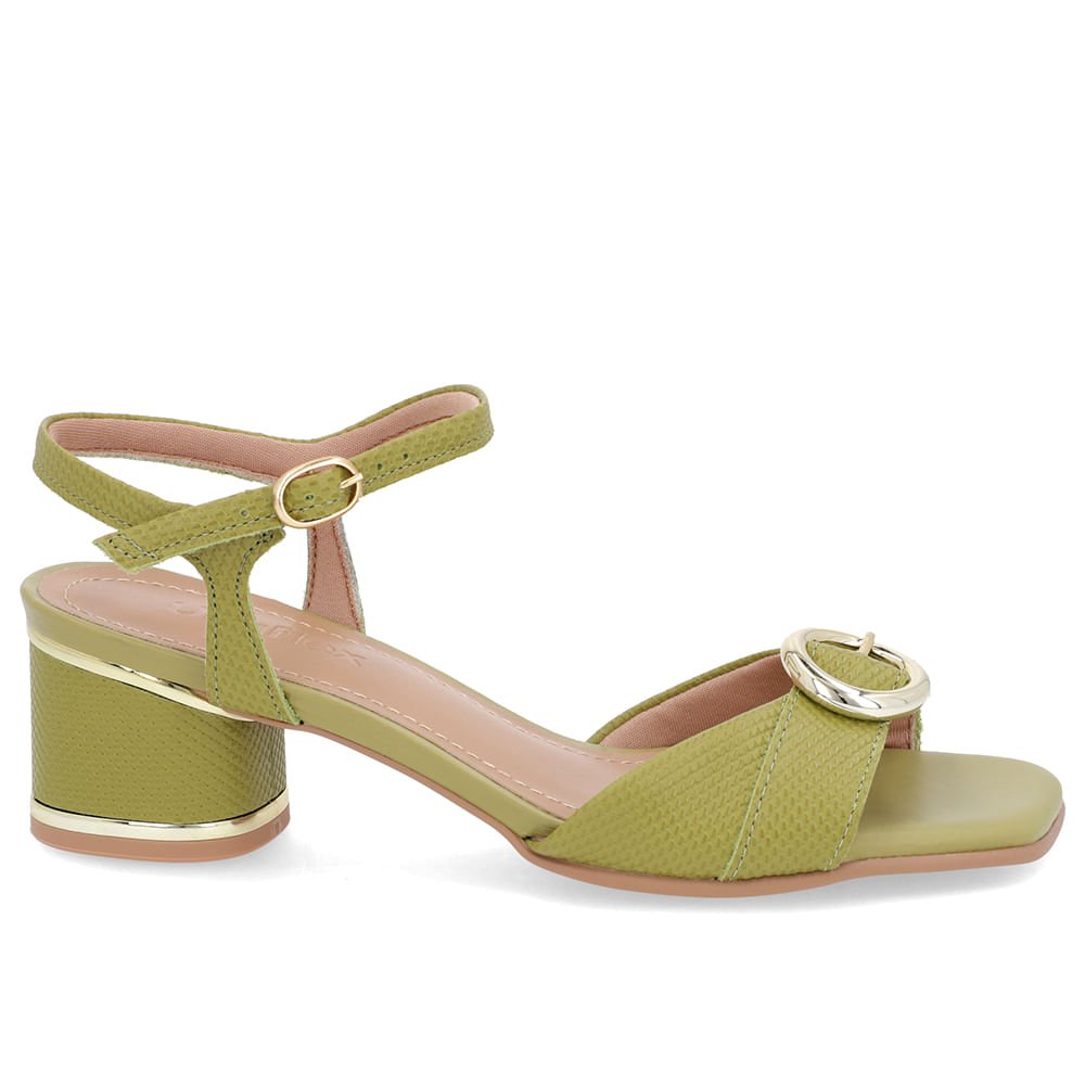 Sandália Couro Verde Fivela Verde
