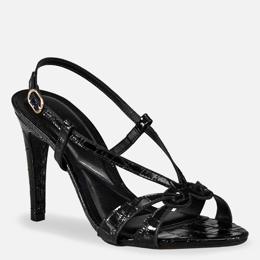 • Sandália Croco Salto Fino Preto Preto 1