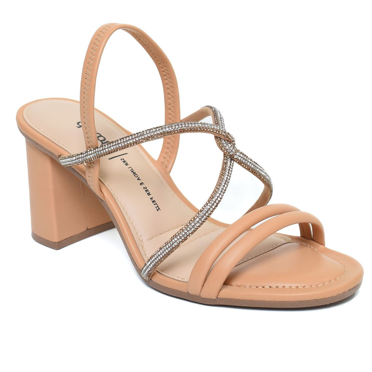 Sandália Dakota Strass Salto Bloco Feminina - Bege Bege