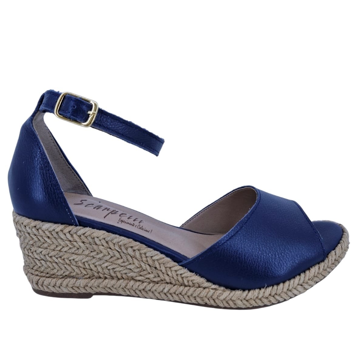 Sandália Feminina Anabela Casual Em Couro Scarpetti 22006 Marinho