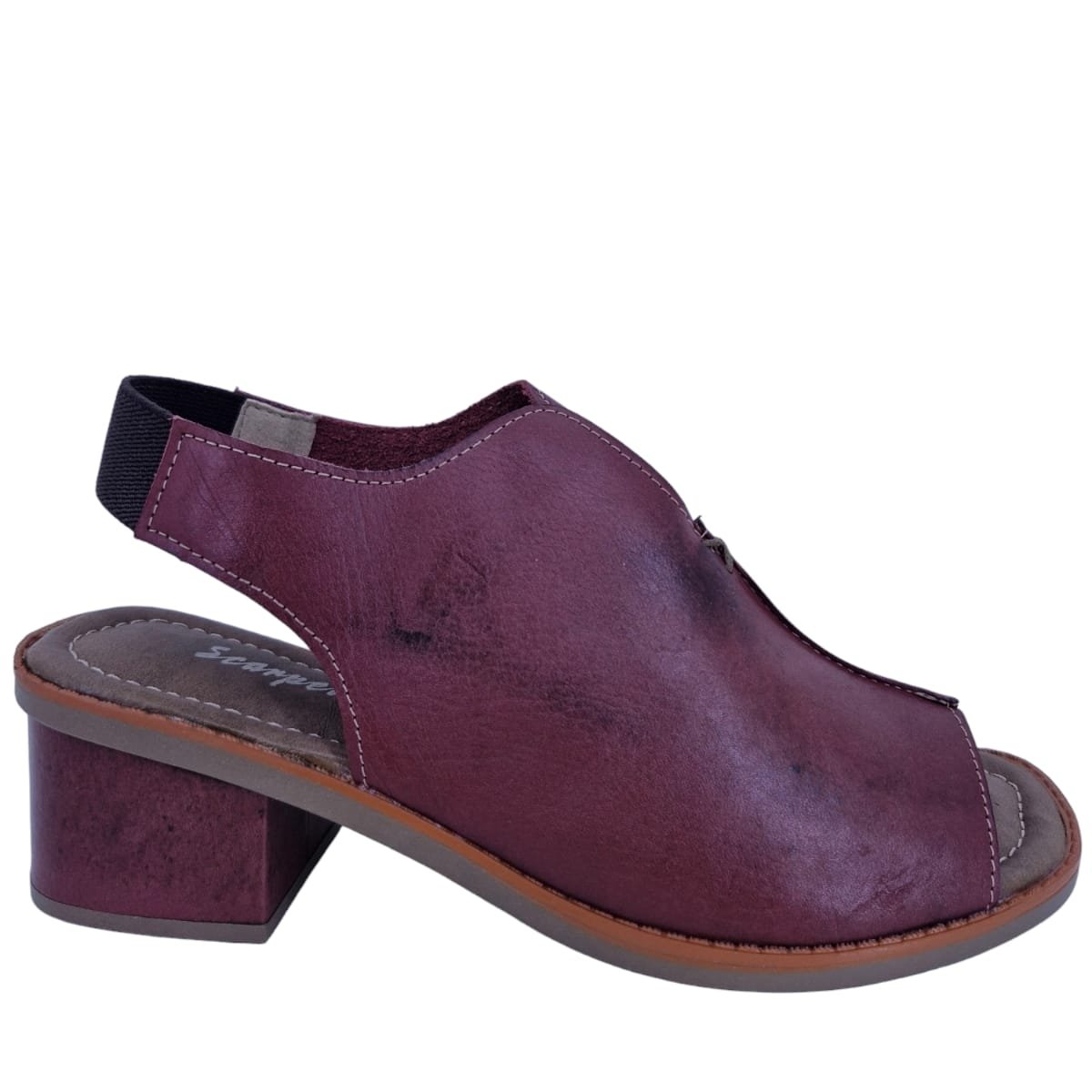 Sandália Feminina Casual Salto Bloco Em Couro Scarpetti 15001 Vermelho