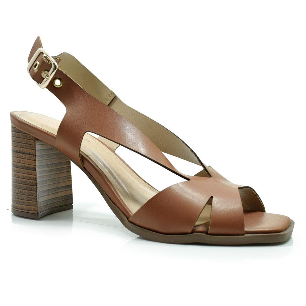 Sandália Feminina com Salto Bloco Cazzualen 973-8372 Marrom