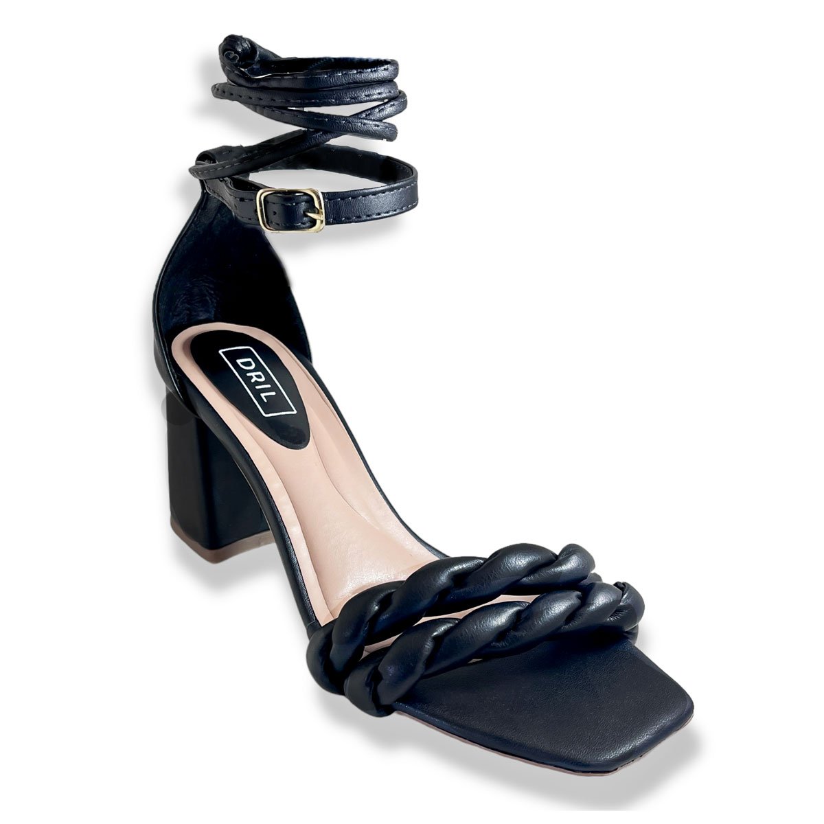Sandalia Feminina Salto Bloco Grosso Tranca e Amarracao Preto Preto