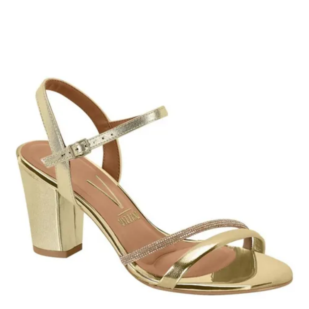 Sandália Feminina Salto Grosso Strass Vizzano 6262.1034 Dourado