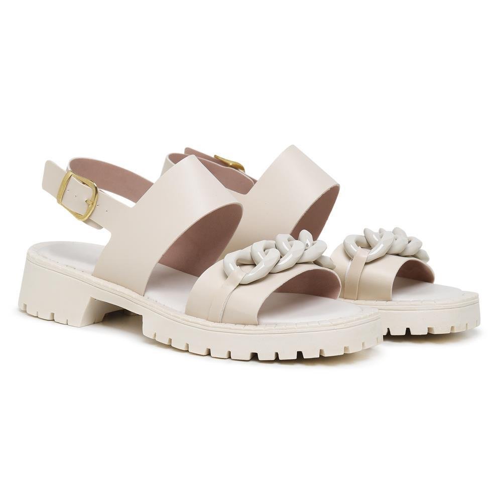 Sandália Feminina Tratorada Corrente Fivela Conforto Estilo