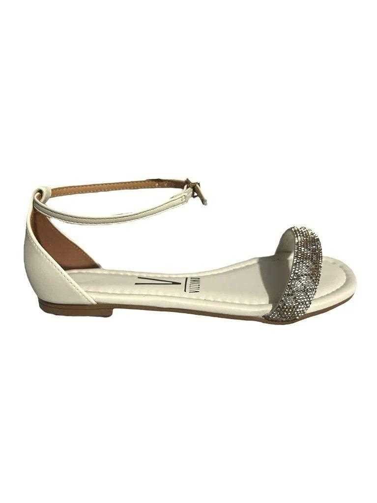 Sandália Feminina Vizzano Rasteira Tira Brilhante Branco