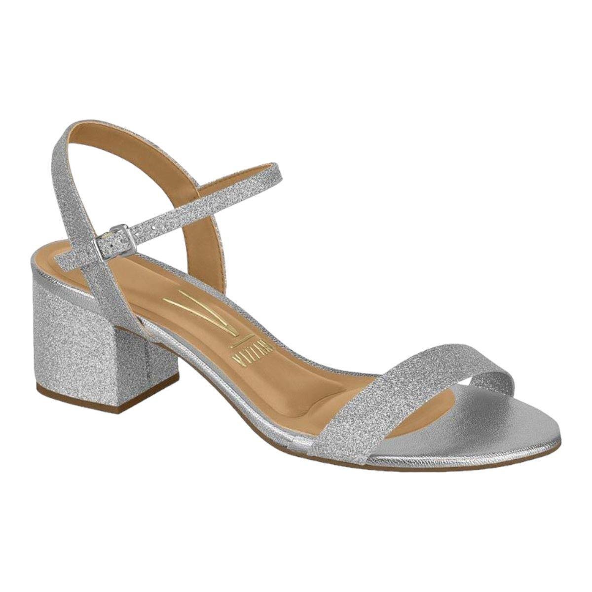 Sandália Feminina Vizzano Salto Blocado Prata