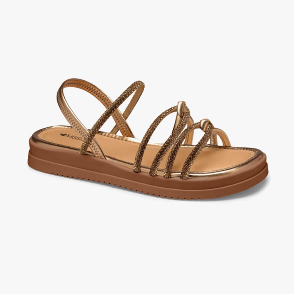 Sandália Flat com Elastico e Brilho nas Tiras Bronze