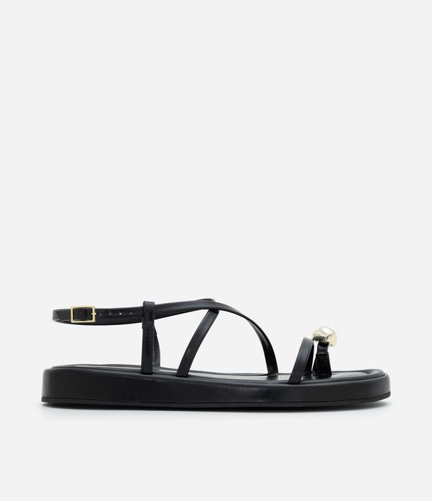 Sandália Flatform em PU com Tiras Finas e Dedeira Preto