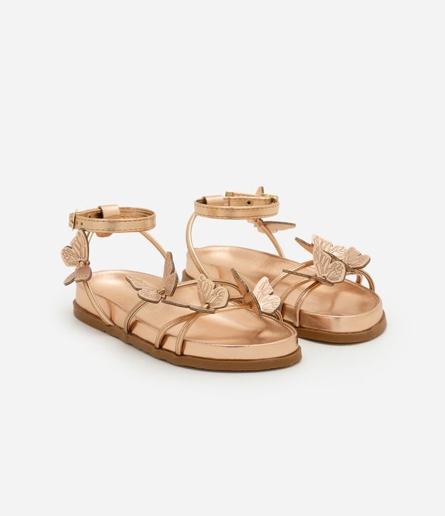 Sandália Infantil Metalizada com Borboletas Aplicadas - Tam 28 ao 33
