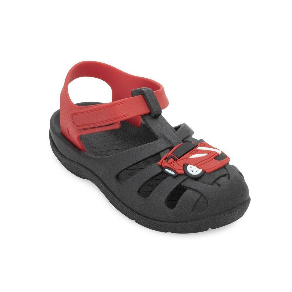 Nome: Sandália Luelua Infantil LE23-12950. Gênero: Menino. Indicado para: Moda - Dia a Dia. Estilo da Peça: Casual. Material Externo: PVC. Detalhe: Desenho emborrachado no cabedal. Ajuste: Tira com fixador aderente. Palmilha: PVC. Solado: Borracha antiderrapante. Peso do Produto: 394 g (o peso varia de acordo com a numeração). Garantia do Fabricante: Contra defeito de fabricação. Origem: Nacional. Código Produto: 03050046. Marca: LueLua.