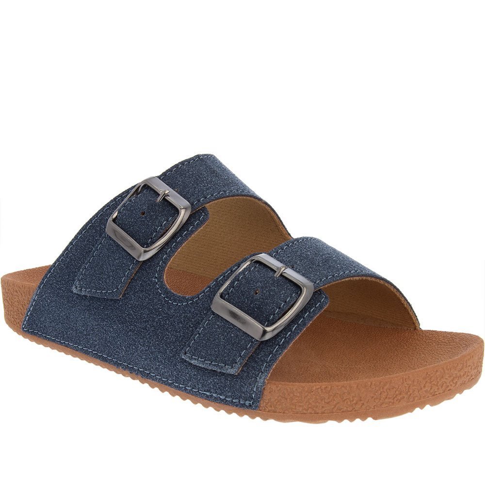 Sandália Mac & Jac Flatform Detalhe Fivelas Camurça Marinho