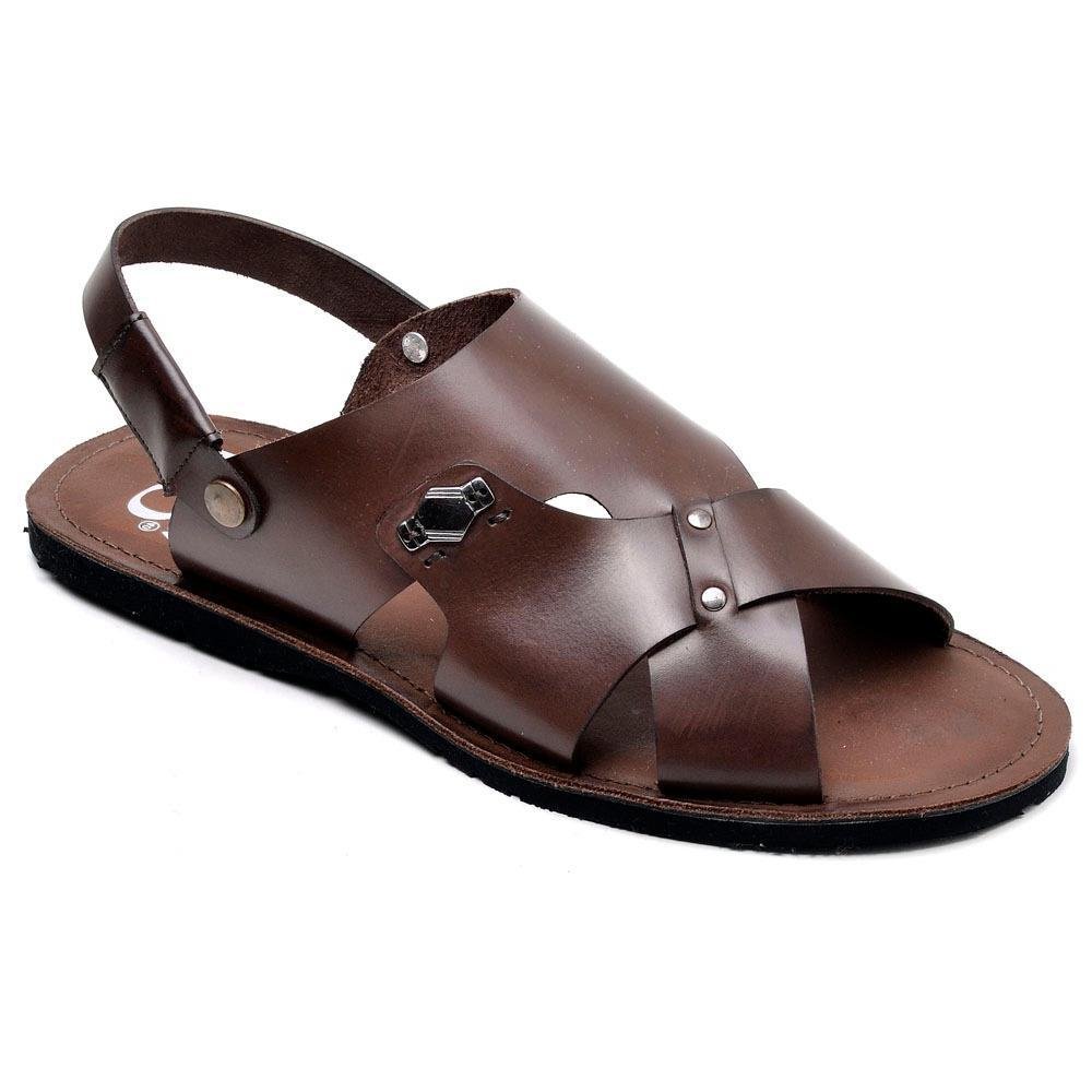 Sandália Masculina Couro Rasteira Tiras Confortável Casual Marrom