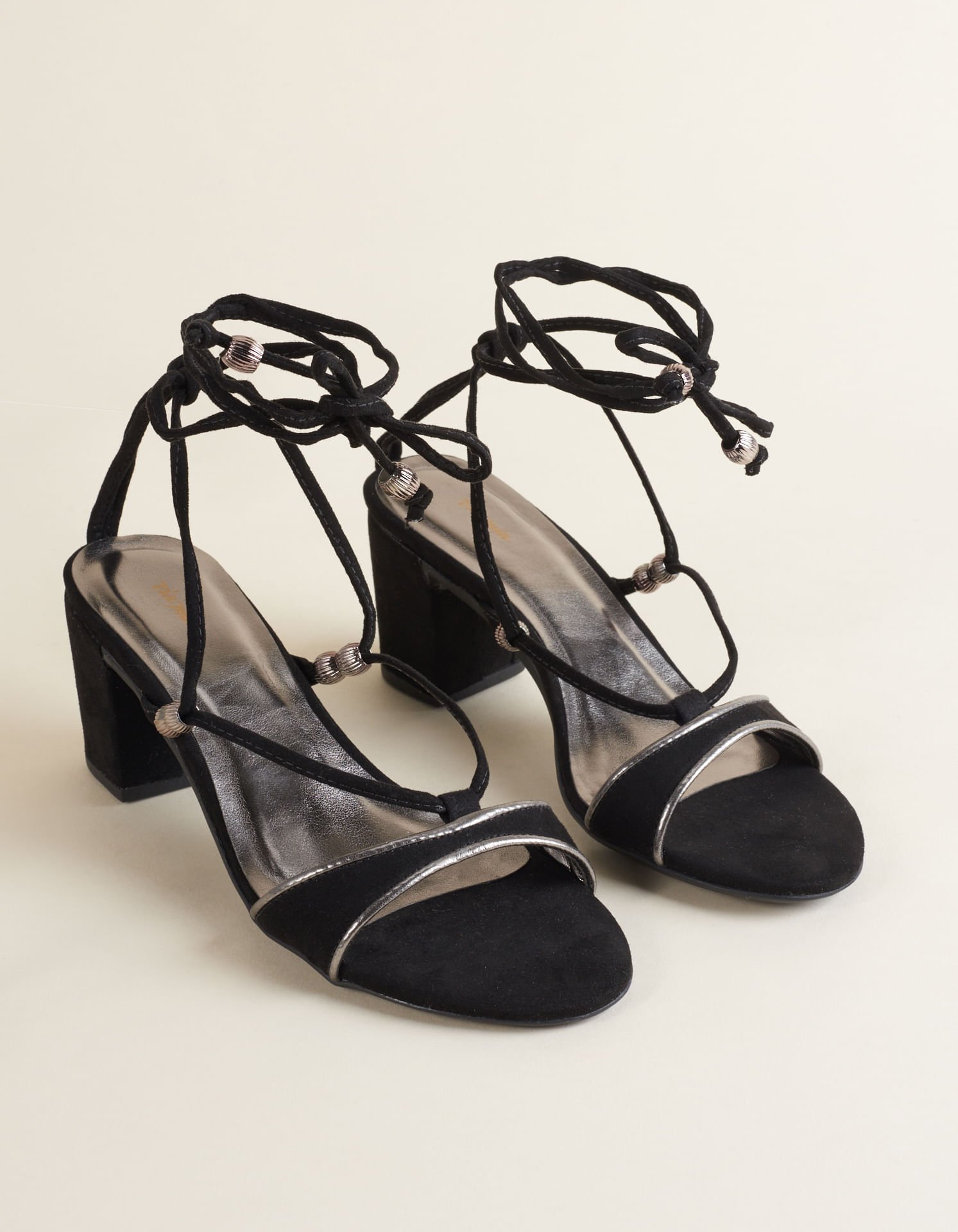 Um toque de luxo no seu look com essa sandália média! Com debrum metalizado e bolas texturizadas na lateral, ela é perfeita para quem busca um estilo único. O fechamento de amarração no cabedal e o salto forrado completam o visual.