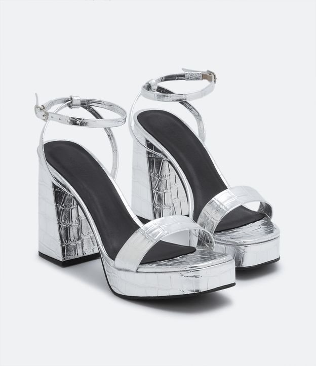 Sandália Meia Pata Metalizada com Textura Croco