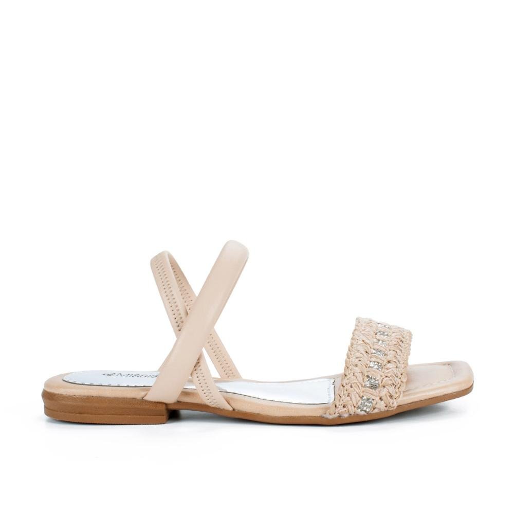 A Sandália Rasteira Mississipi da coleção Primavera/Verão 2024 destaca seu design minimalista e atemporal, que a torna versátil e fácil de combinar com diversos lookse está disponível na cor . o destaque fica por conta da tira tramada com detalhe de brilhos que envolve a parte frontal do pé, que adiciona um toque de sofisticação e modernidade ao modelo, conferindo um ar artesanal e único. O bico quadrado e o salto baixo com 1.0 cm de altura proporciona leveza, além de um visual moderno e despojado. o calce fácil, graças à tira maleável que envolve o calcanhar sem fechamentos, garante praticidade e agilidade no dia a dia, enquanto o peso de apenas 0,455 kg torna a sandália ainda mais confortável.