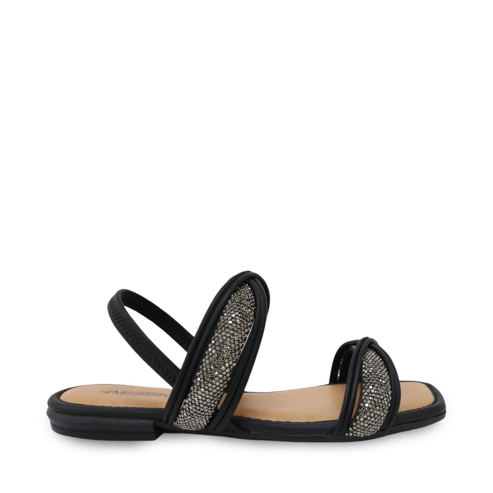Sandália Mississipi Rasteira Strass Preto