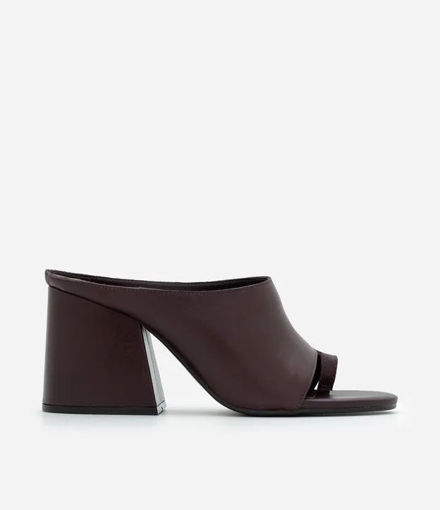Sandália Mule em Couro com Salto Bloco e Dedeira Vinho