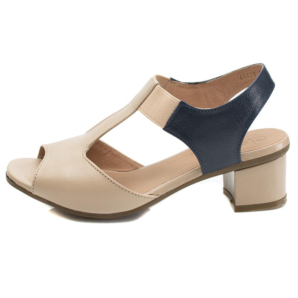 Sandália Opananken em Couro Amêndoa e Marinho