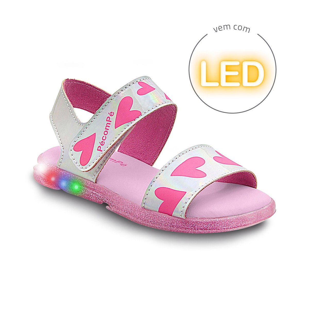 Sandalia Papete Infantil Menina Com Luzes De Led Pe com Pe Prata
