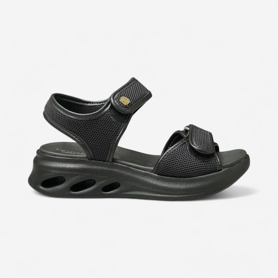 Detalhes de ajuste: dois velcros ajustáveis que garantem firmeza ao caminhar e facilidade para calçar