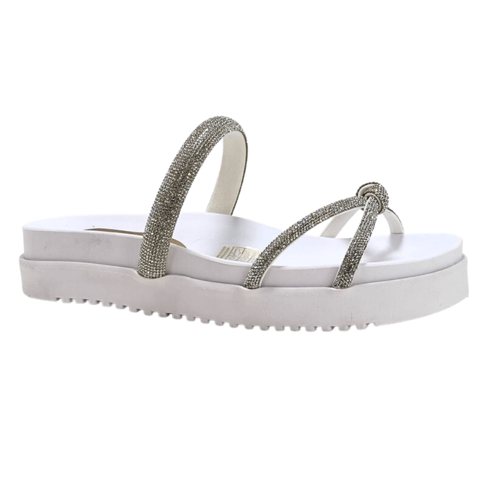 Sandália Papete Tira Trançada Pedraria Branco Strax 032