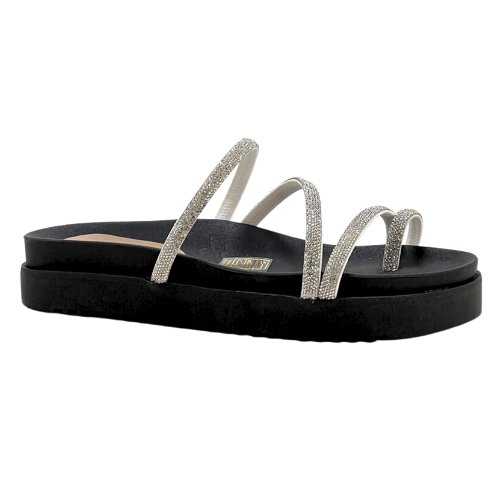 Sandália Papete Tiras Pedraria Preto Strax 035