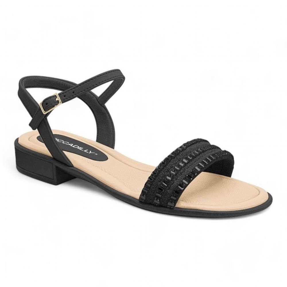 • Sandália Piccadilly Salto Baixo Feminina Preto 1