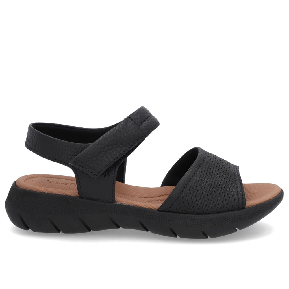 Sandália Plataforma Couro Preta Fecho-Flex