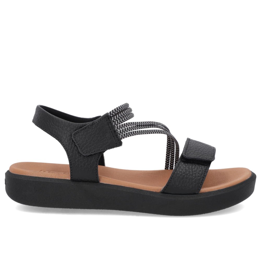 Sandália cabedal em couro relax catalano na cor preta detalhe em elástico. O modelo possui tecnologia Calce Fácil, com modelagem inteligente em adaptar o calçado a ergonomia dos pés.
