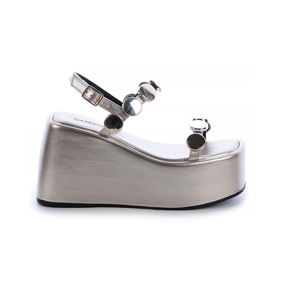 Esta é a nova Sandália Kaline. Este modelo tem duas tiras com enfeites metais que irão dar muito estilo e modernidade para seus looks. Fechamento fivela.
