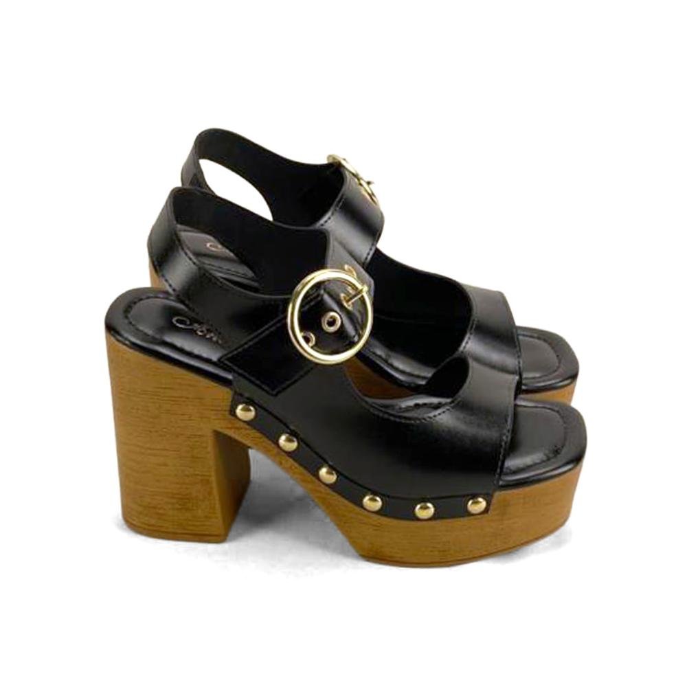 Sandália plataforma preta com tachas ouro light