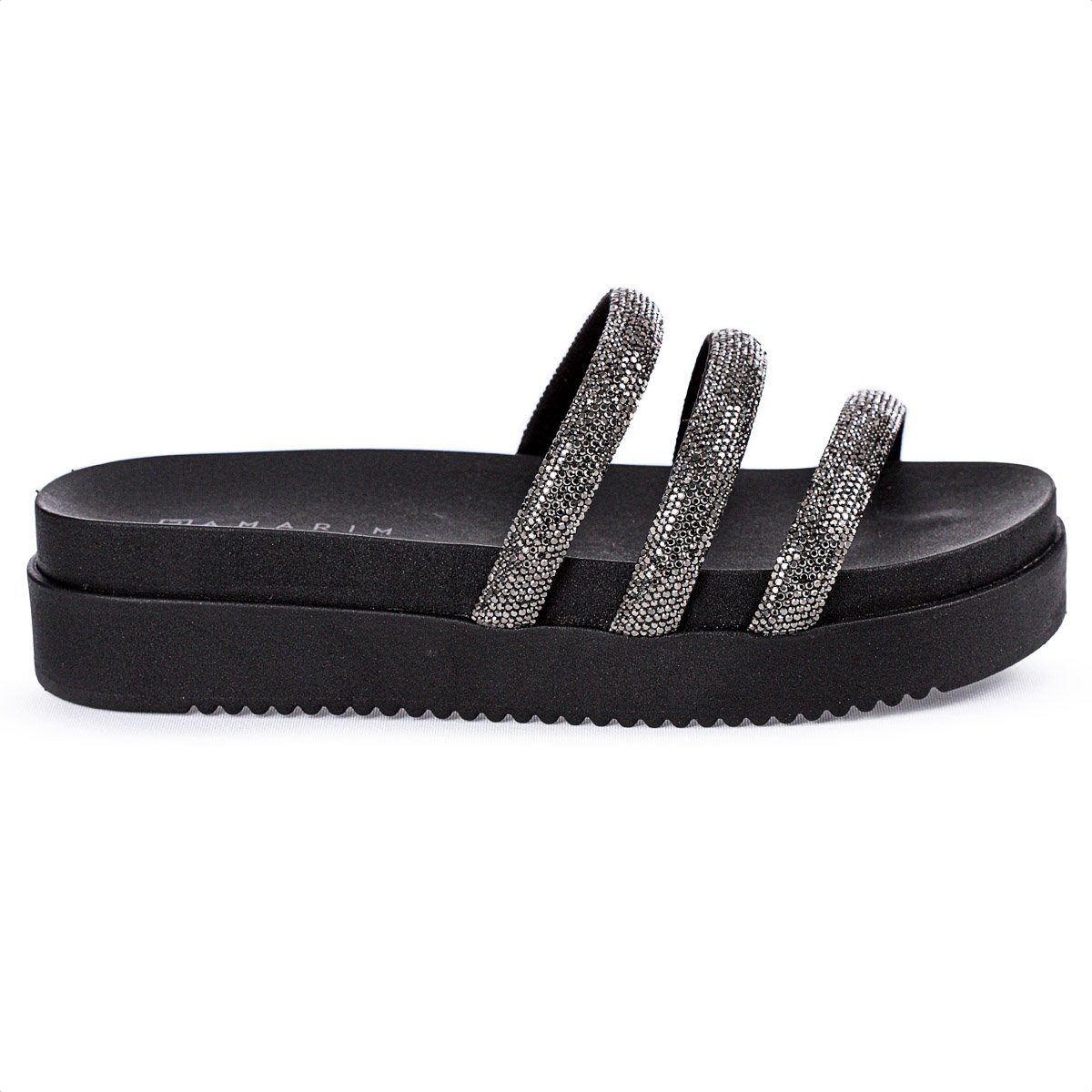 Conteudo da embalagem: 1 par de Sandalia Ramarim Papete Tira Strass Preto - Feminino