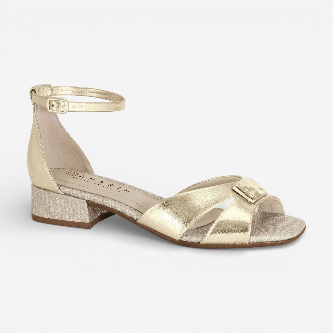 Sandália Ramarim Salto Baixo Metalizada Dourada