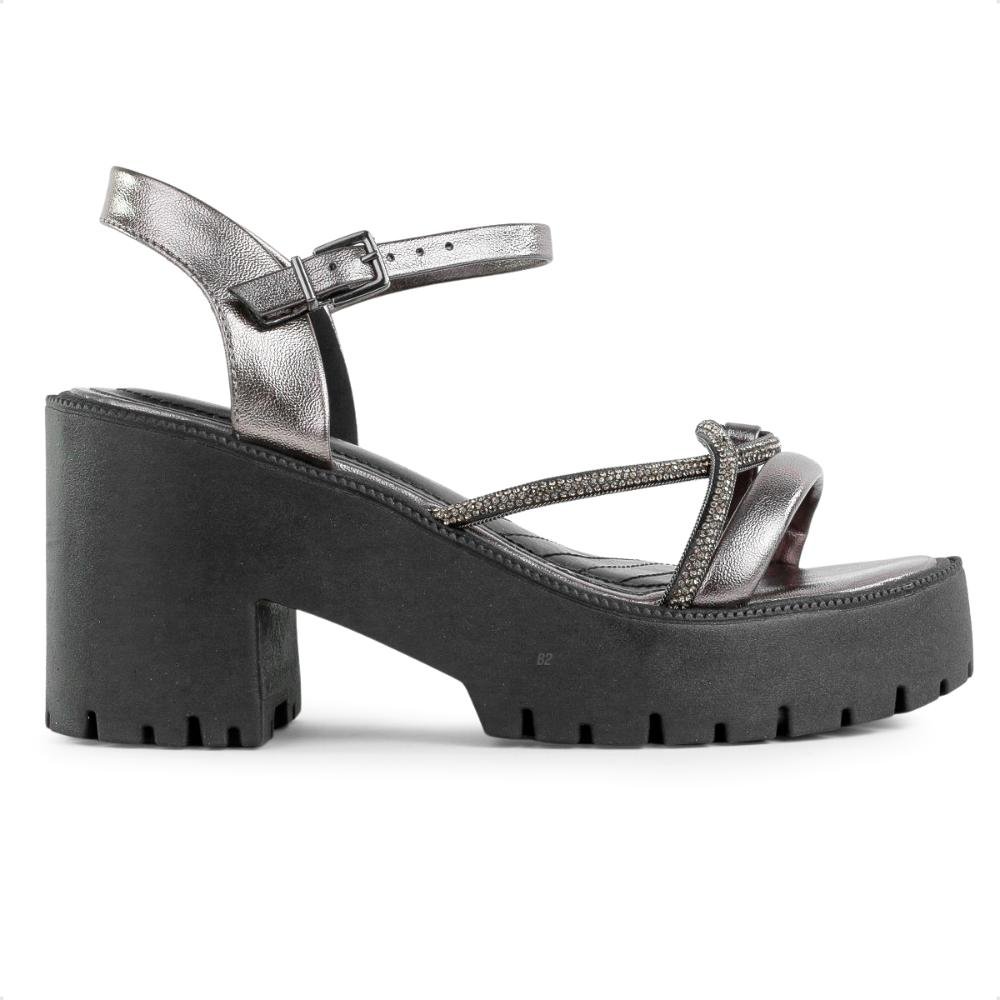 Sandália Ramarim Tratorada Feminina Preto/Prata