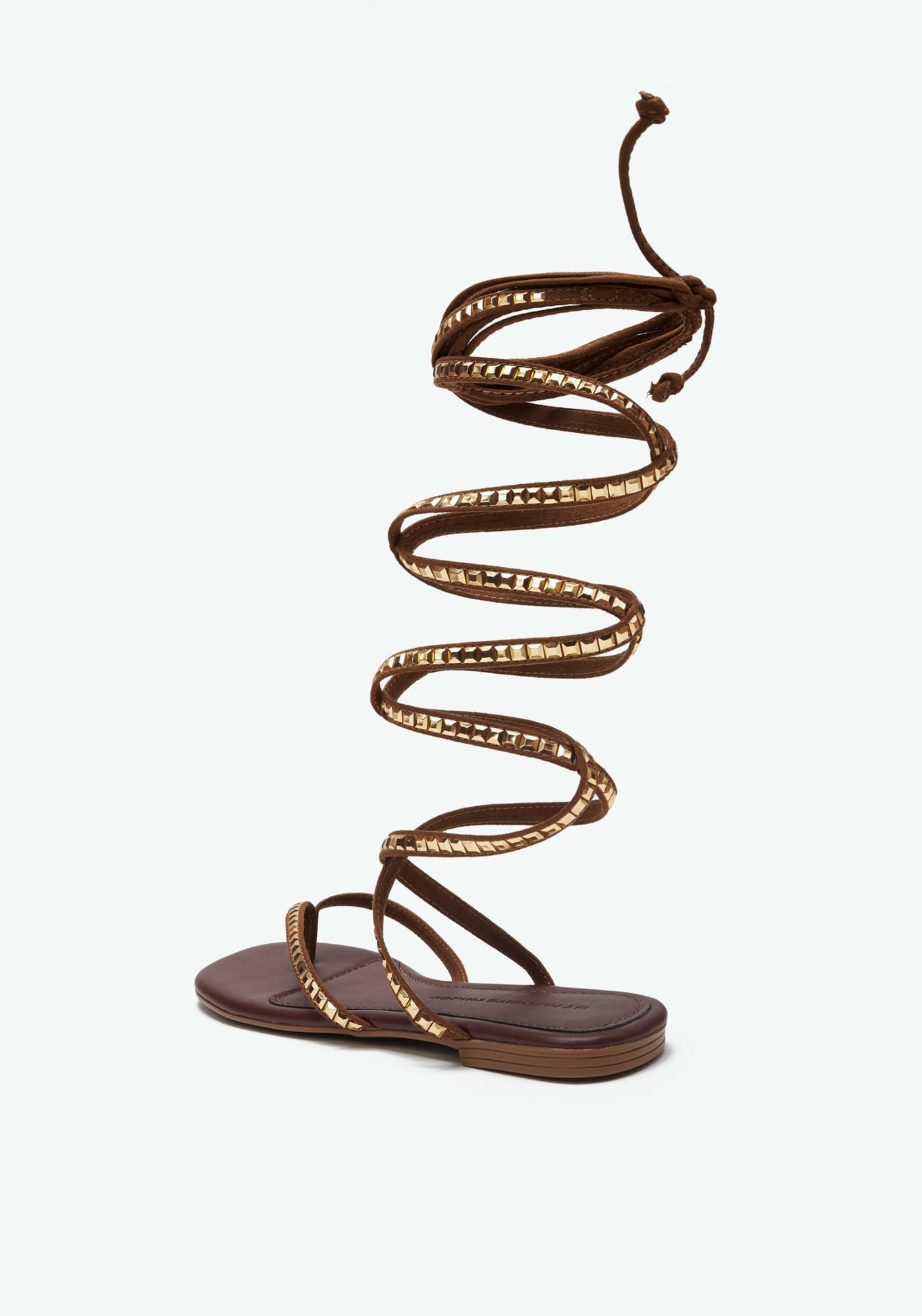 Arrase nessa estação com a sandália rasteira de amarração! Detalhes em tachas e bico quadrado trazem estilo e conforto. Combine com peças de alfaiataria para um look elegante e descolado.