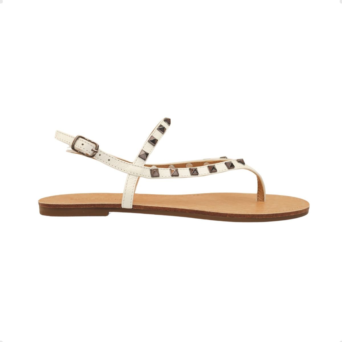 Sandália Rasteira Aura Dayane Magalhães Spike Couro Branca