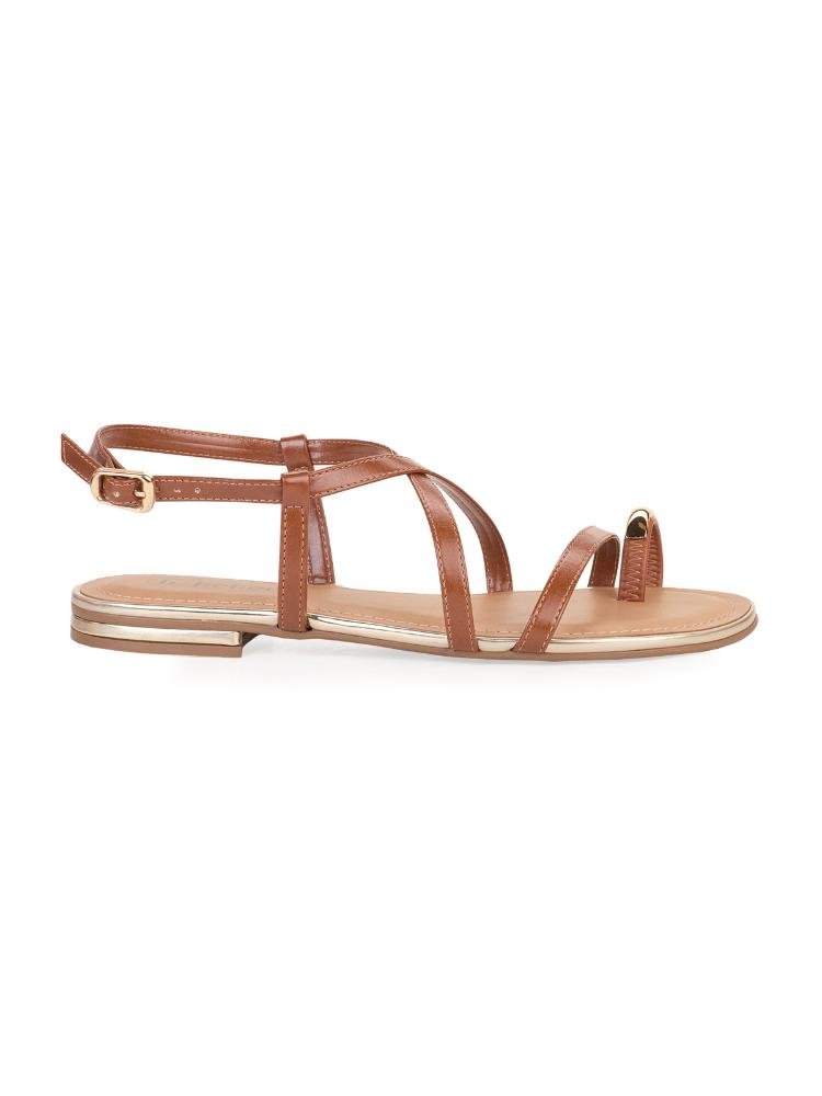 Sandália Rasteira Bebecê Minimal Tiras Enfeite Anel Marrom