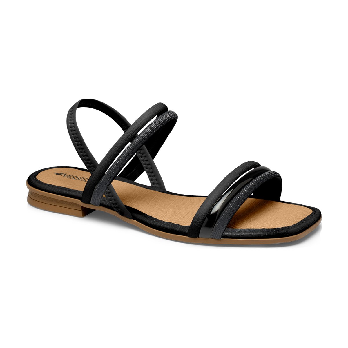 Sandália Rasteira Casual Tiras Feminina Mississipi Preto