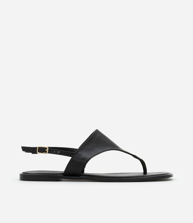 Sandália rasteirinha confeccionada em couro legítimo, de dedo e com fechamento no calcanhar por tira e fivela.