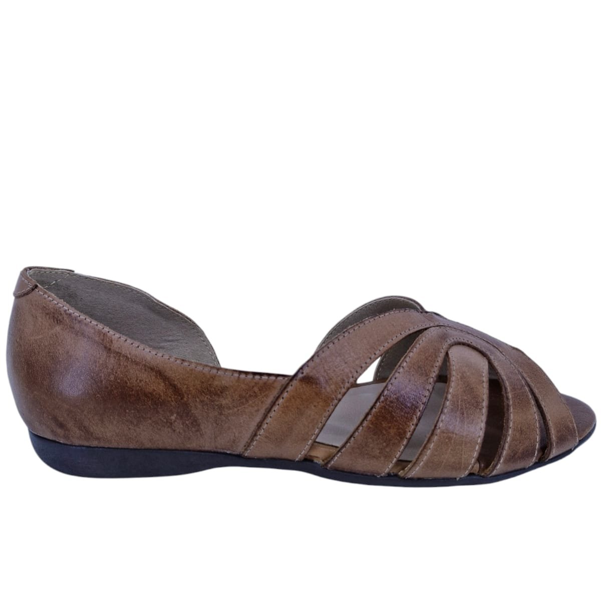 Sandália Rasteira Em Couro Bico Redondo Casual Scarpetti 1011 Marrom
