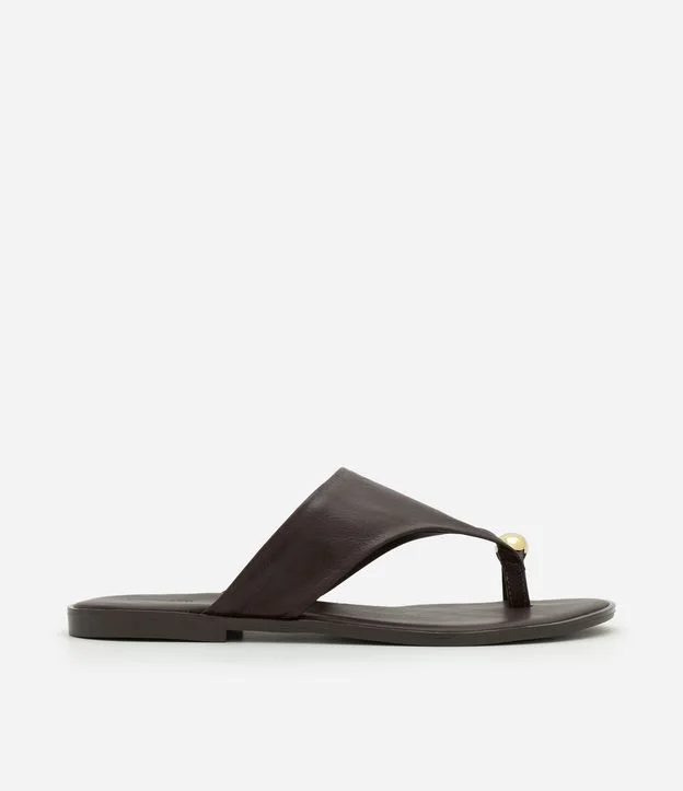 Sandália Rasteira em Couro com Dedeira e Detalhe Bold Marrom