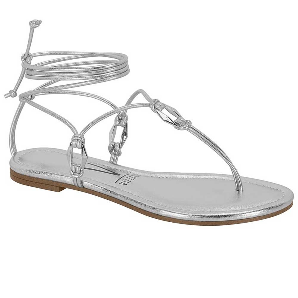 Sandália Rasteira Feminina Amarrar Prata Vizzano 6235.1809 Prata