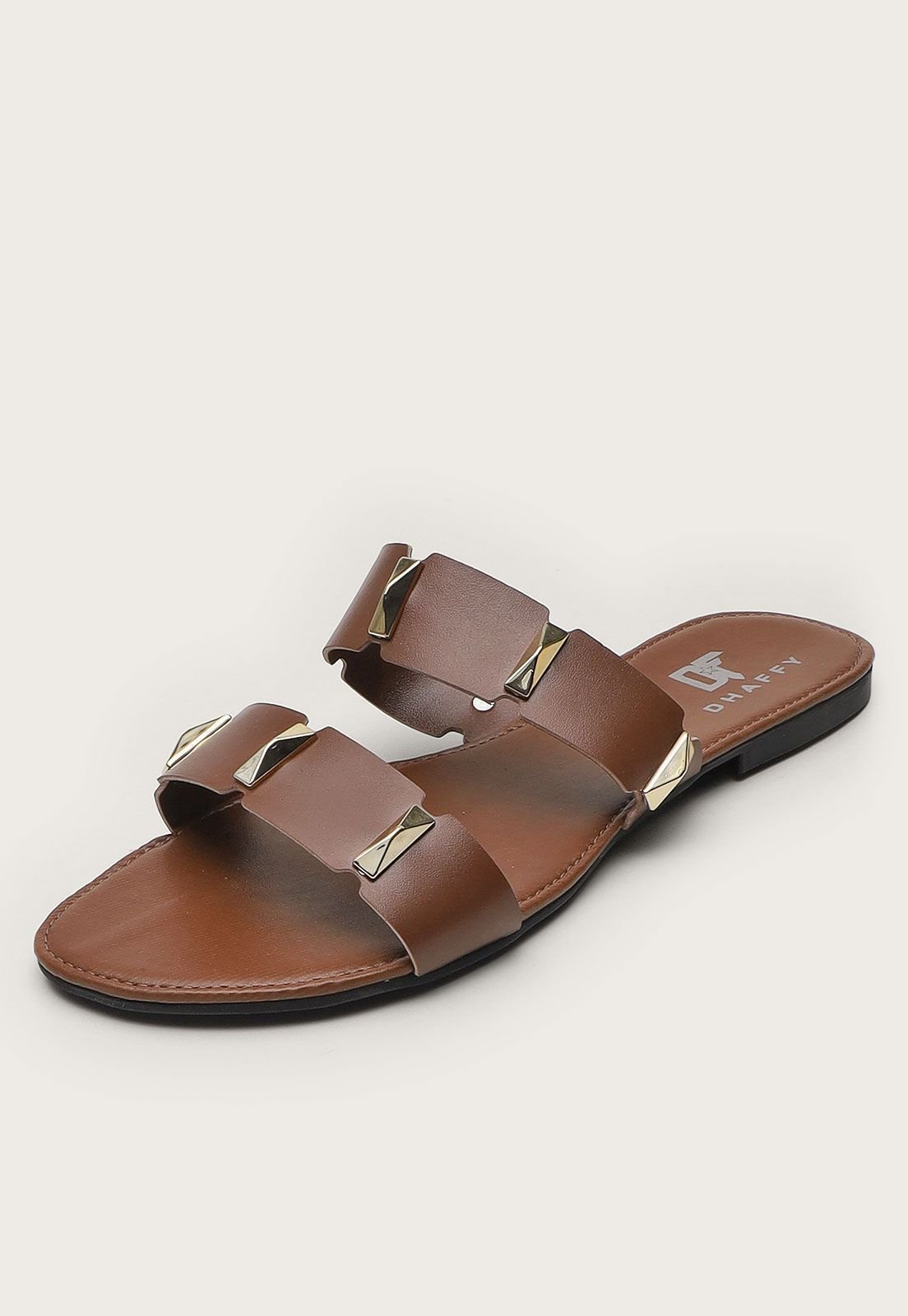 Sandália Rasteira Feminina com Spike Dourado Marrom