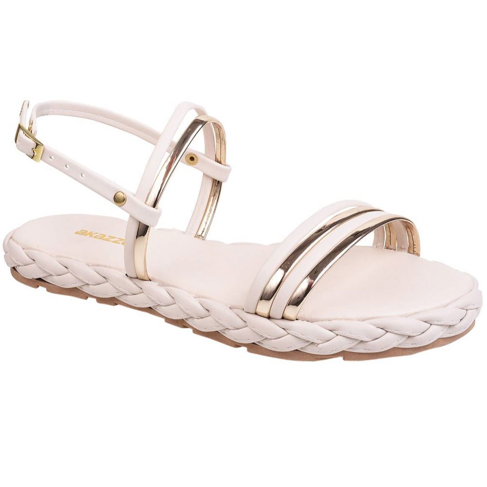 Sandália Rasteira Feminina Off White Ouro Akazzo 3780C