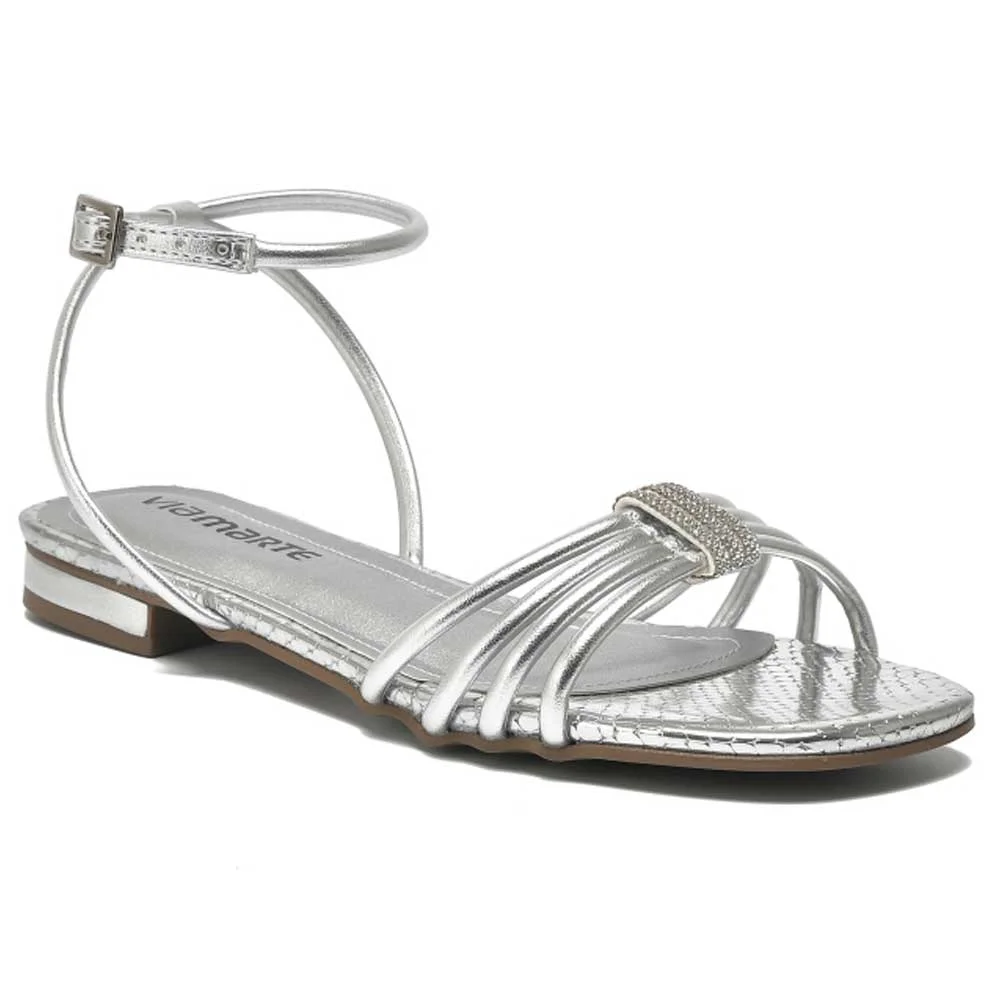 Sandália Rasteira Feminina Prata Via Marte 202-003-01