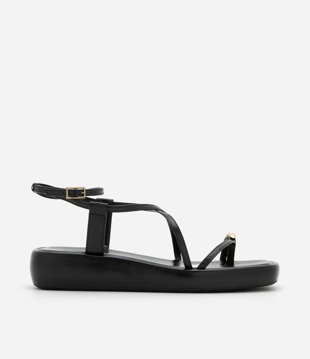 Sandália Rasteira Flatform em PU com Dedal de Metal Preto
