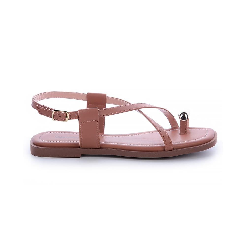 Sandália Rasteira Samira Dedo Nude com Dourado Marrom