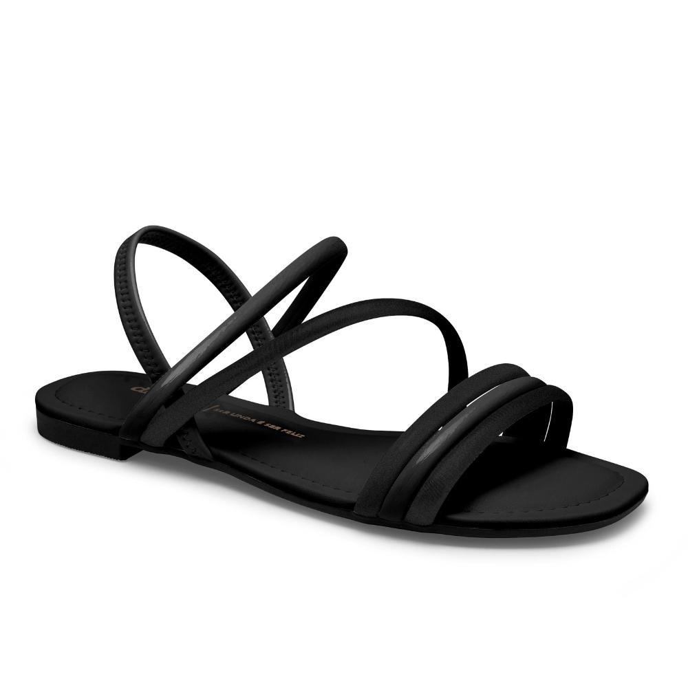 Produzida com materiais sintéticos de alta qualidade, a sandália conta com cabedal macio e resistente, além das tiras metalizadas que proporcionam brilho sutil e toque moderno. O calce é em tira ajustável, garantindo praticidade e segurança no calce. A entressola é confortável e levemente acolchoada, e o solado emborrachado antiderrapante oferece firmeza e segurança na caminhada, mesmo em diferentes tipos de piso.